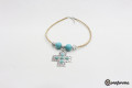 With pendant in metal with in cross-shaped pendant with blue turquoise stones.